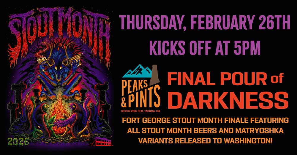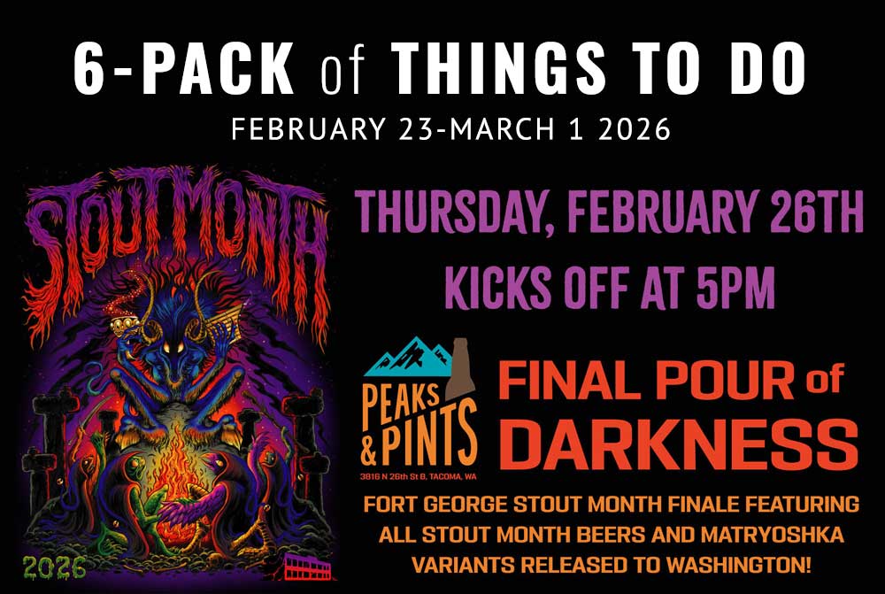 The shadow of Fort George Brewery’s 2026 Festival of Dark Arts drifts north and settles into the Proctor lodge as Peaks & Pints hosts Fort George’s annual Dark Arts Road Show, pouring 15 or so rare Fort Goerge stouts that feel like late-night stories told in low light — bourbon-laced Matryoshka variants, roasted curiosities, and festival survivors still carrying coastal hush. It’s not about spectacle; it’s the afterglow, a space where conversations slow and glasses linger a little longer than planned. For one evening the tap log becomes a quiet annex of Dark Arts mythology, all depth and patience without the carnival noise. Fort George Dark Arts Road Show, 5 p.m. Thursday, Feb. 26, 3816 N. 26th Sat., Basecamp Proctor, Tacoma, no cover