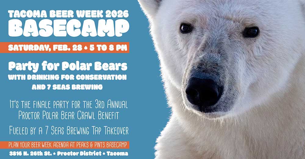 Tacoma Beer Week spills into the Proctor District with a little Arctic spirit as the 3rd Annual Proctor Polar Bear Crawl winds through neighborhood shops before landing at Peaks & Pints for Basecamp, that golden-hour reset where friends gather, compare routes, and decide what comes next. What begins as a cheerful wander evolves into a community ritual powered by Party for Polar Bears, Drinking for Conservation, and 7 Seas Brewing pouring from the Western redcedar tap log. Costumes mingle with conservation talk, laughter meets purpose, and the crawl becomes proof that small neighborhood moments can echo far beyond city limits. Party For Polar Bears, 5–8 p.m., Peaks & Pints, 3816 N. 26th St., Basecamp Proctor, Tacoma, benefit for polar bears, no cover