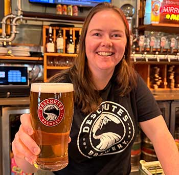 Deaschutes Brewery Pearl District Portland Manager Meghan lifts their new Fine As Bine West Coast IPA.