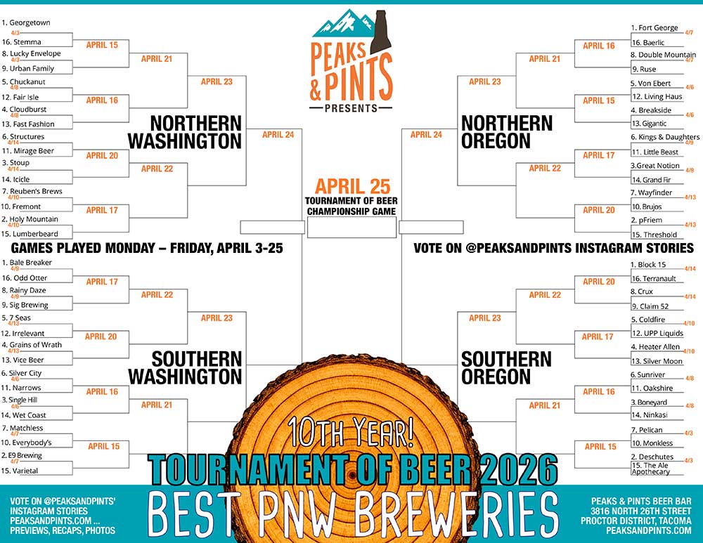 Welcome to the Peaks & Pints Tournament of Beer: Best Pacific Northwest Breweries.